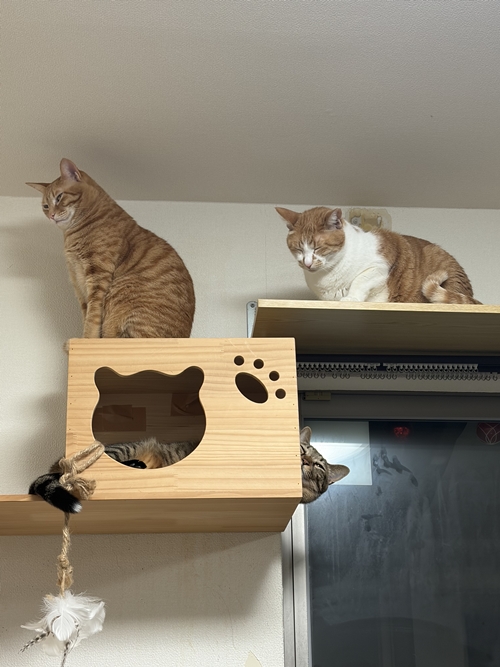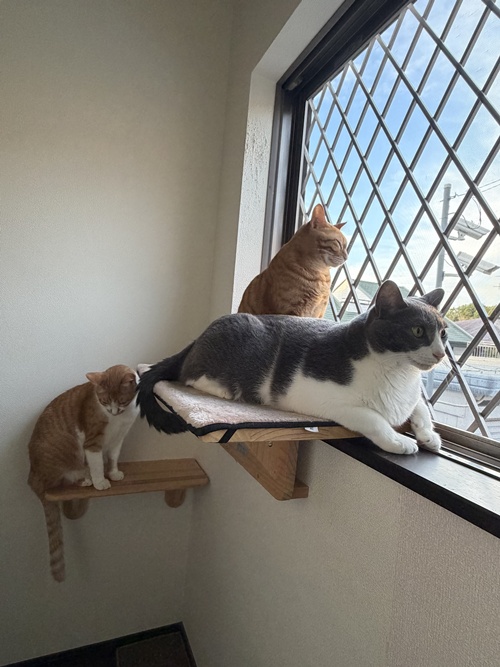 猫たちはみんな元気です。抜け毛が大量に出ています。猫に顔をうずめると、顔に毛がついてかゆいです。