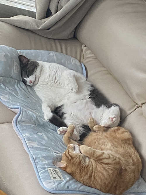 猫たちはみんな元気です。2階の暑い中で寝ています。クーラーはどうも苦手なようです。猫の熱中症に注意しながら、猫ライフを楽しんでいます。