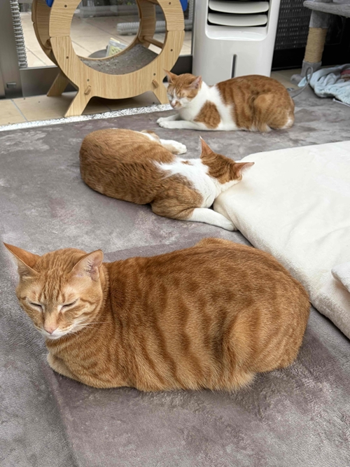 猫たちはみんな元気です。ちょうどいい気候になり、毎日ゴロゴロしています。